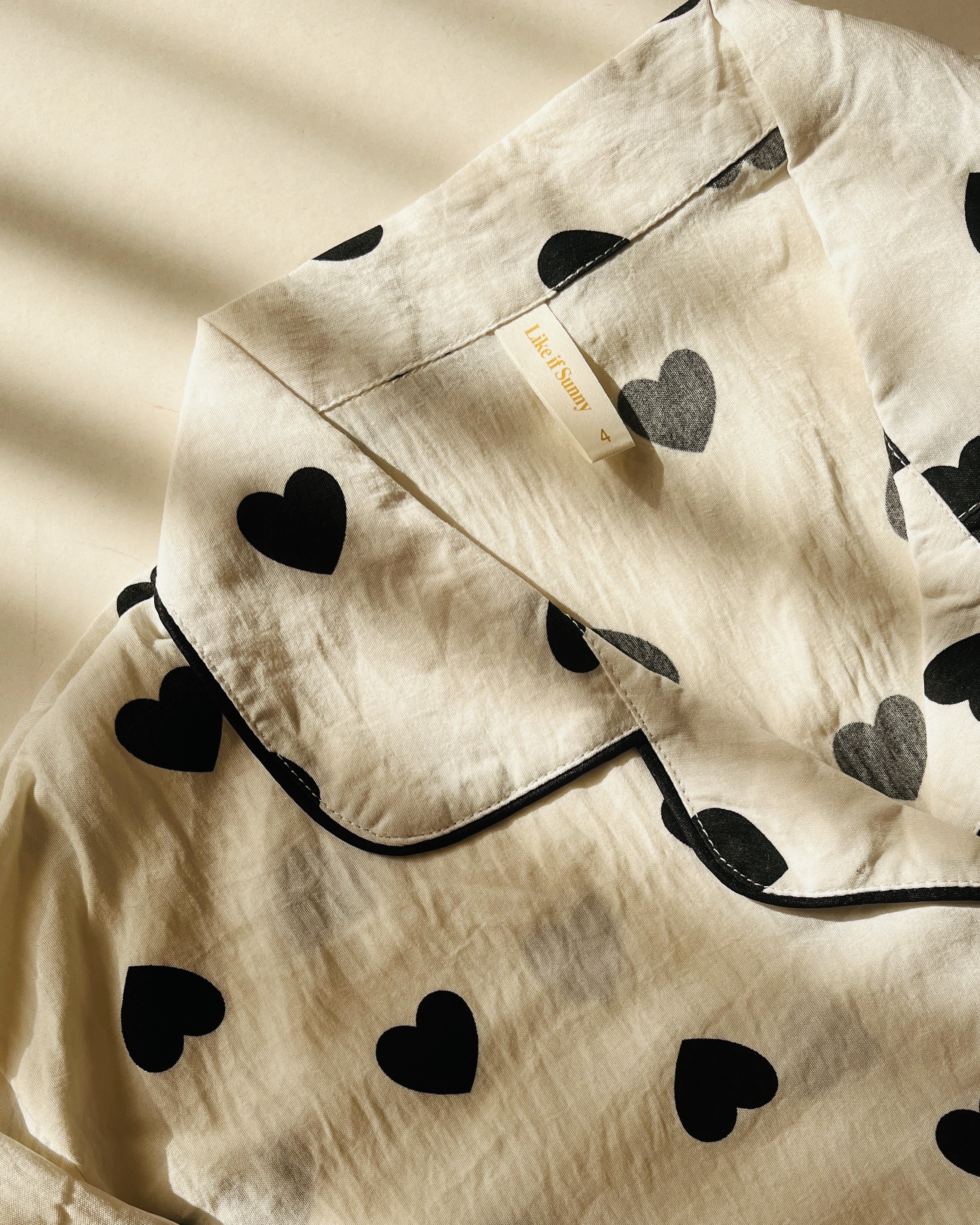 ست دو تیکه بلوز و شلوار آستین بلند نخ موسلین طرح قلب مشکی- کد N10