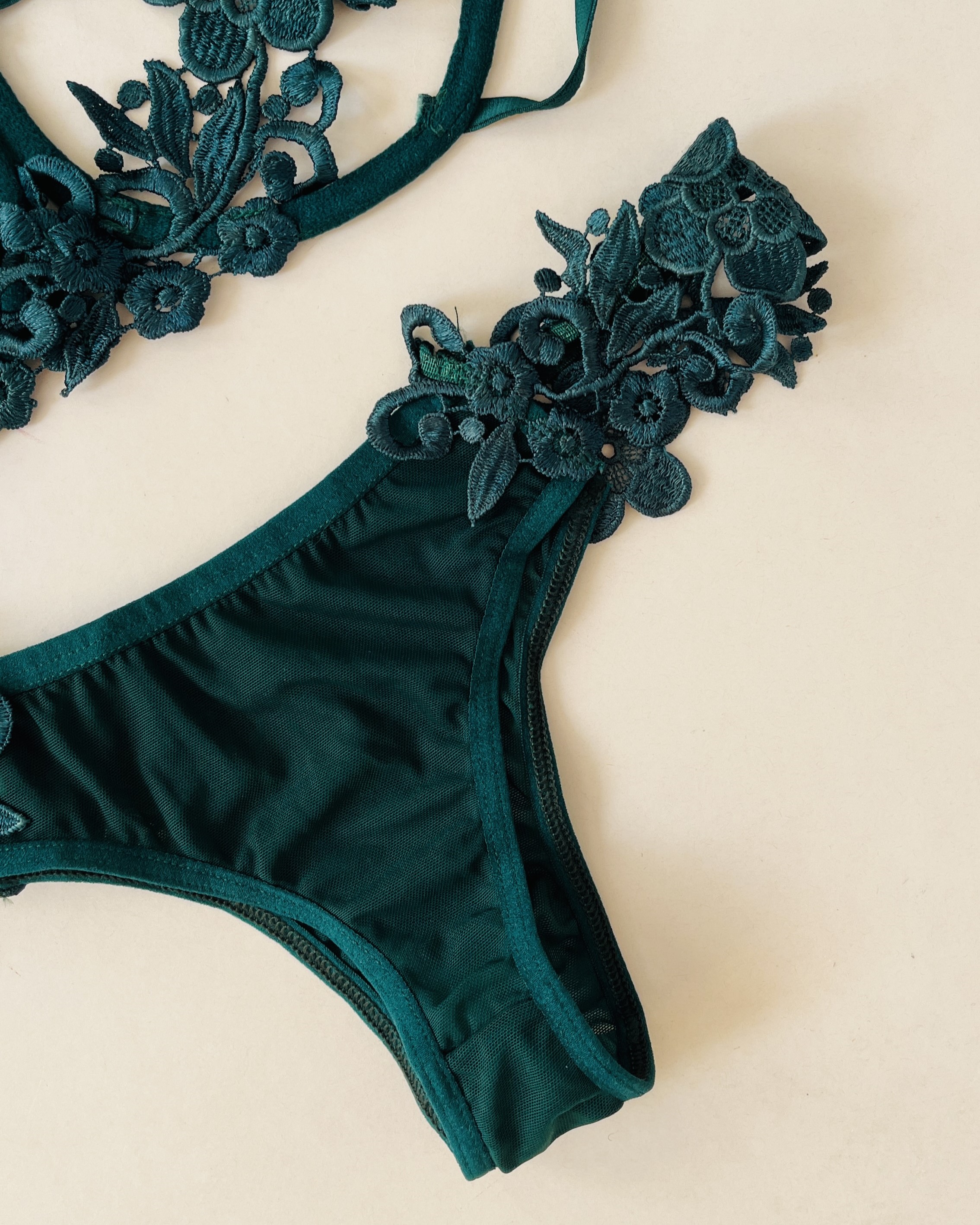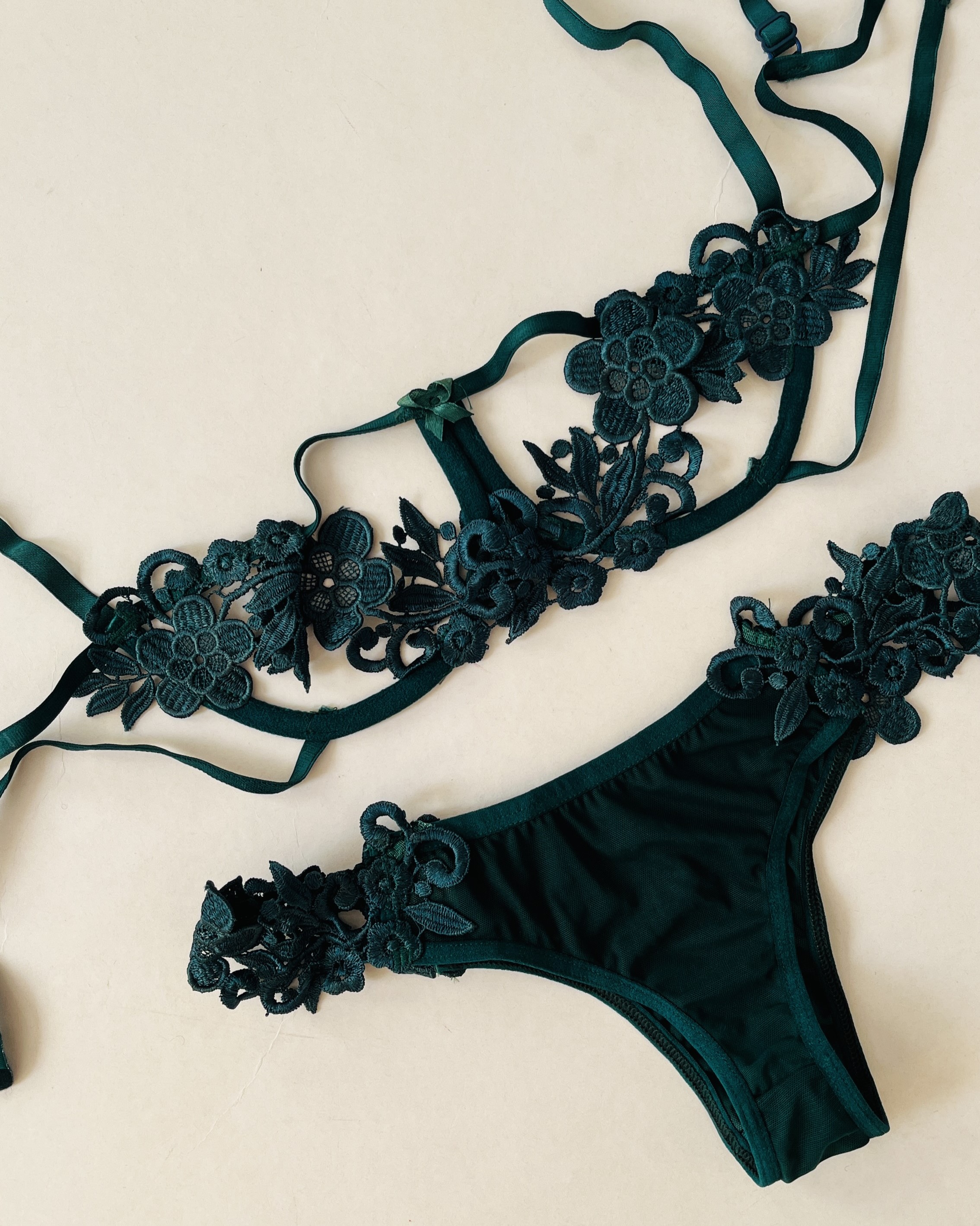 این ست با طراحی خاص و تمامدانتل، انتخابی ظریف و جسورانه برای خانمهایی است که به استایلهای فانتزی و متفاوت علاقه دارند. سوتین این مدل کاملاً از دانتل کار شده و به دلیل طراحی باز و ظریف خود، پوشانندگی زیادی ندارد و بیشتر جنبه زیبایی و فانتزی دارد تا استفاده روزمره.
