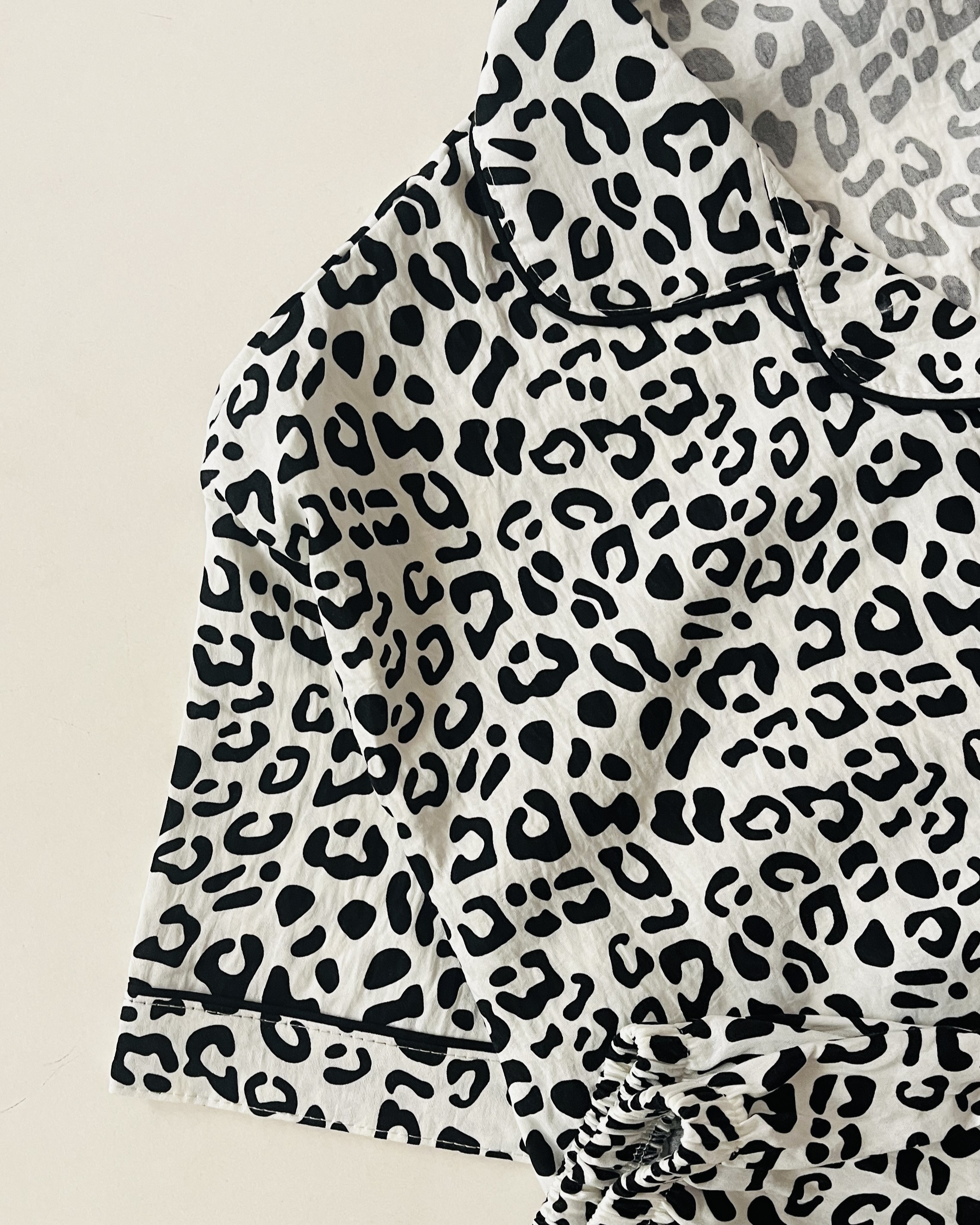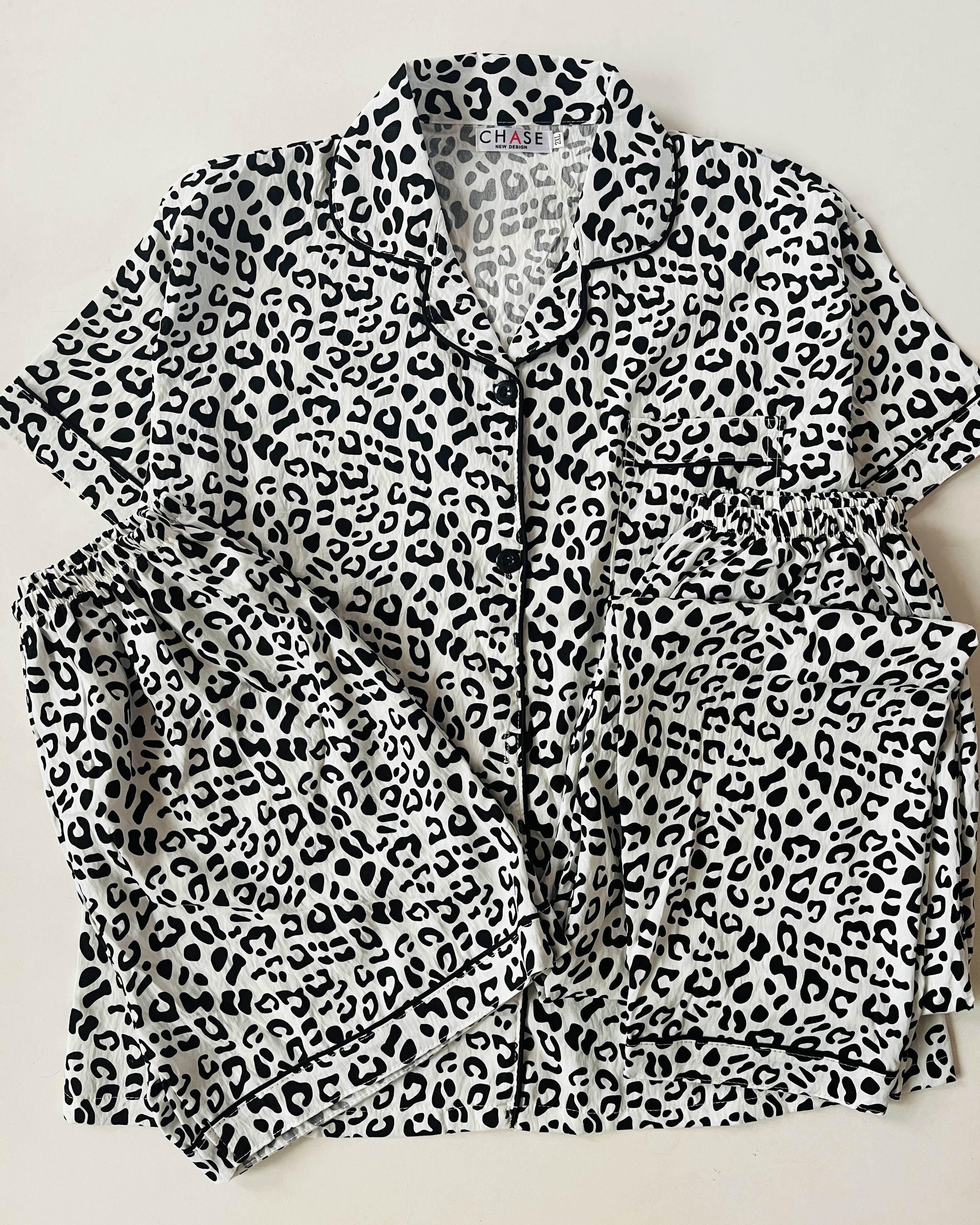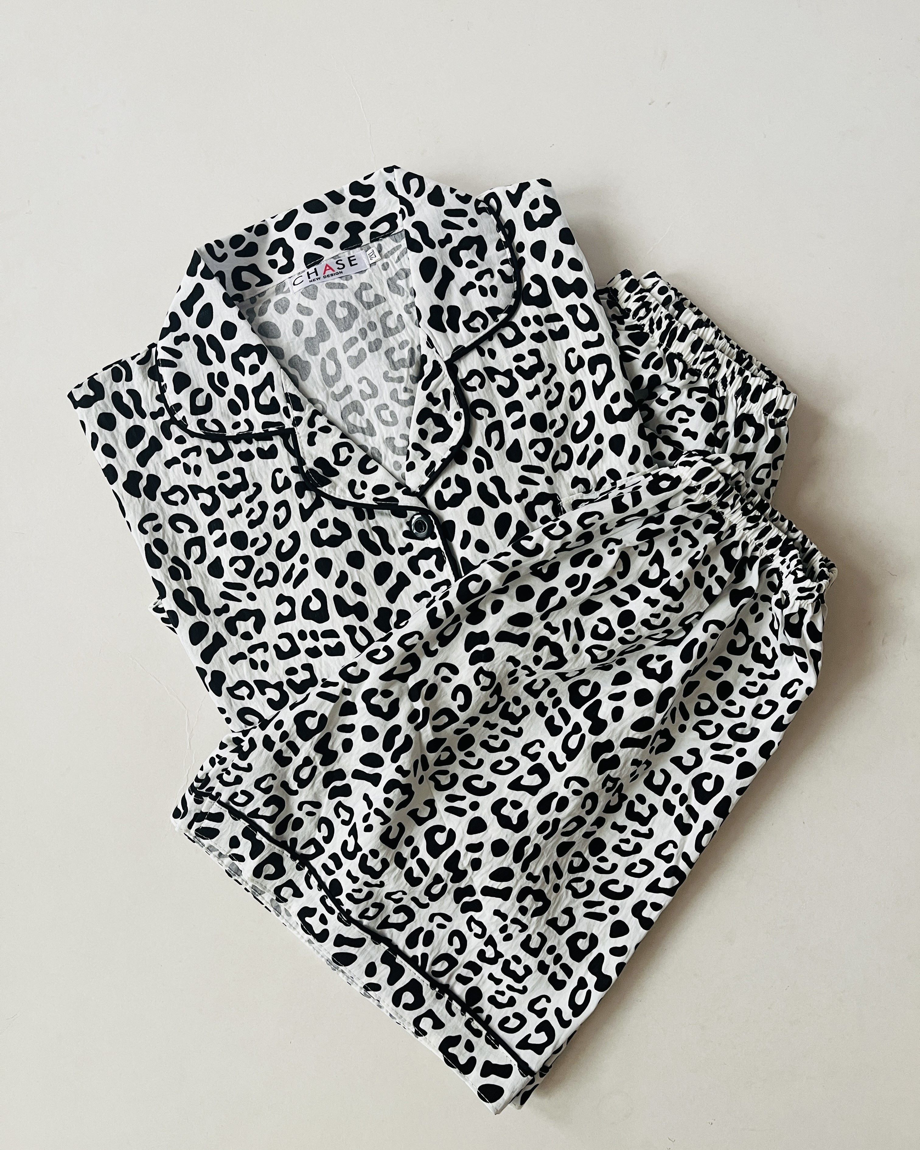 ست سه تیکه بلوز، شلوار و شلوارک نخ موسلین آستین کوتاه طرح پلنگی- کد N14
