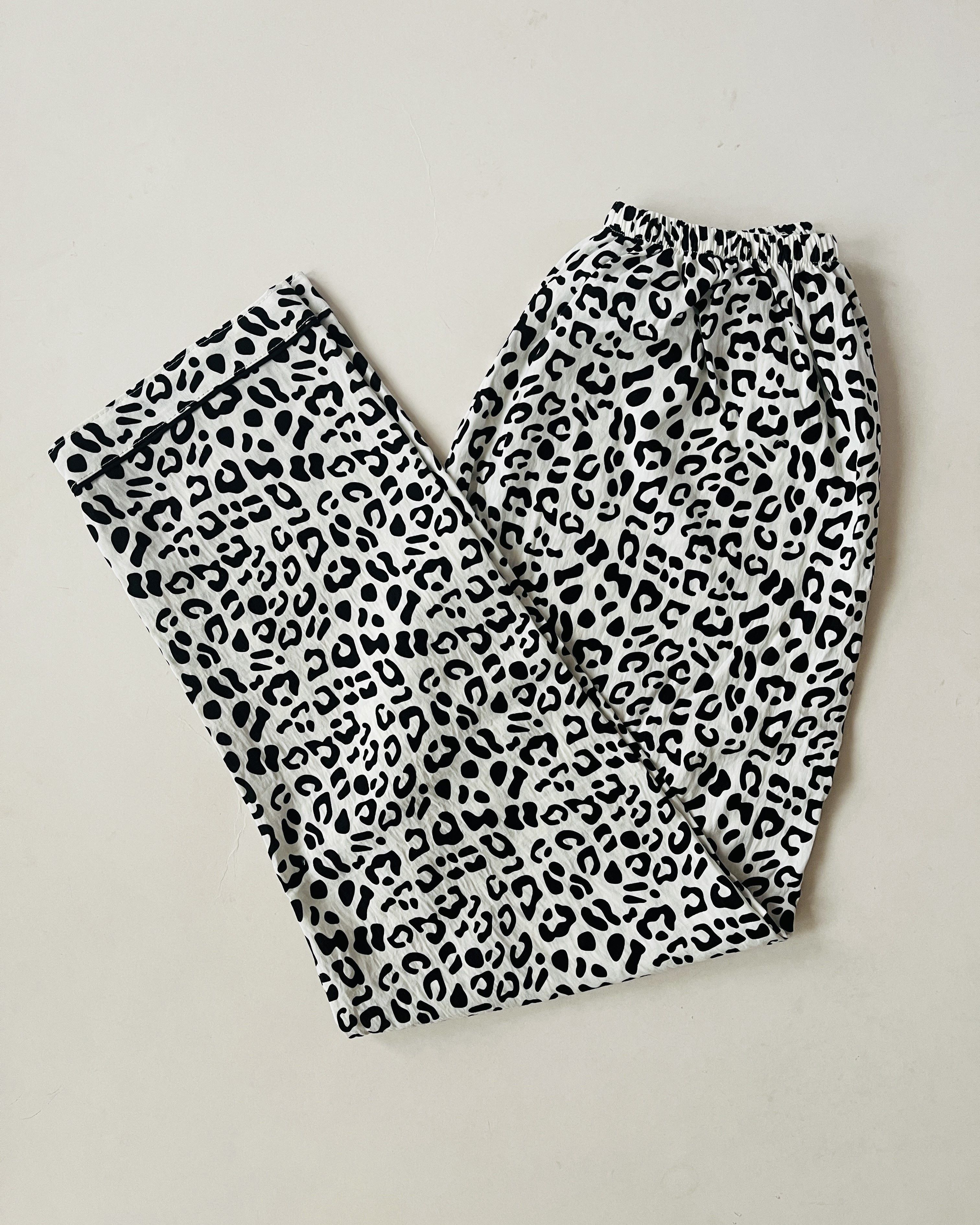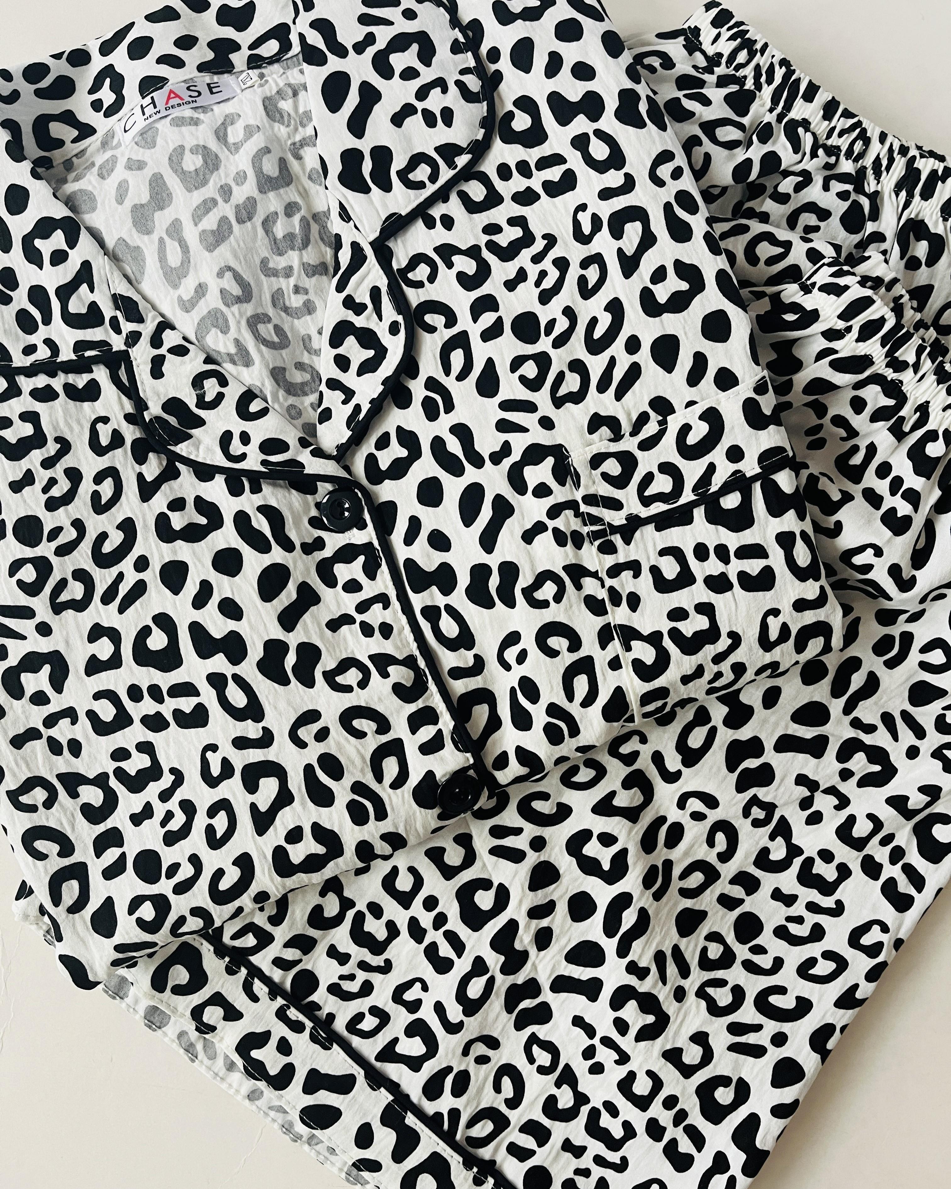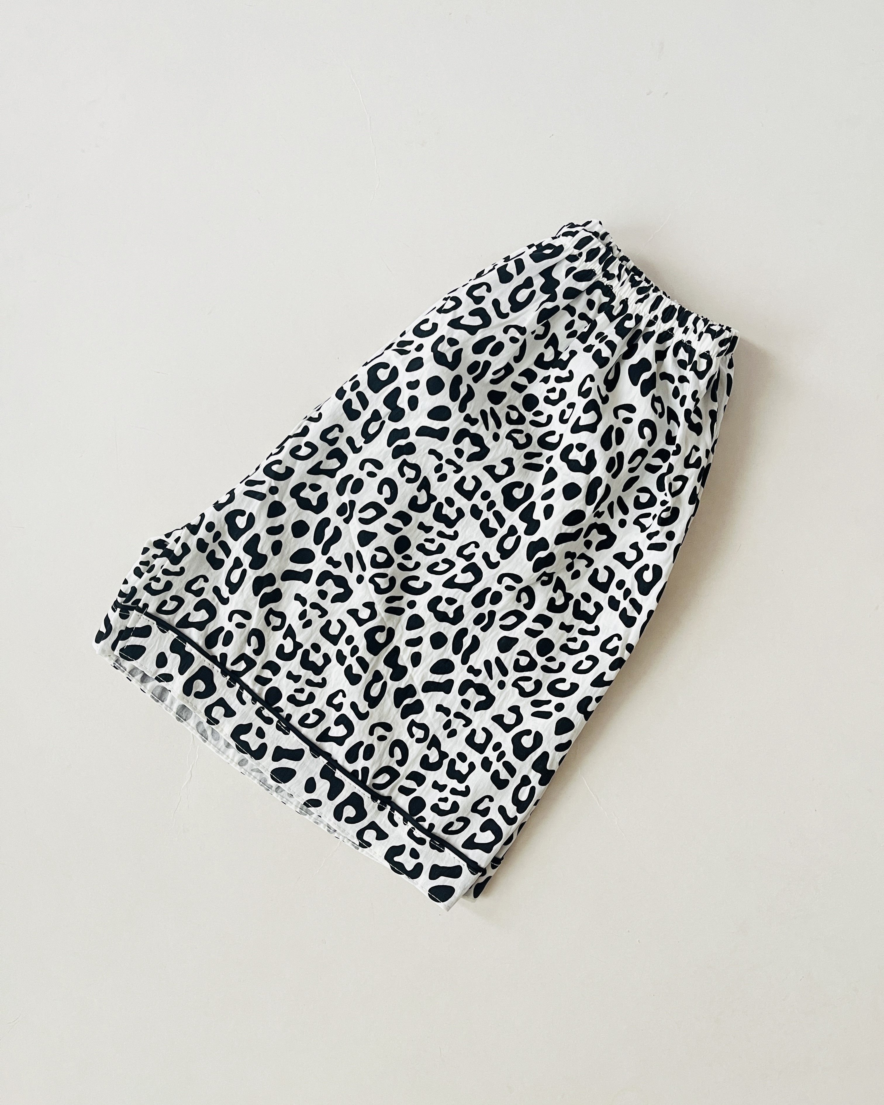 ست سه تیکه بلوز، شلوار و شلوارک نخ موسلین آستین کوتاه طرح پلنگی- کد N14