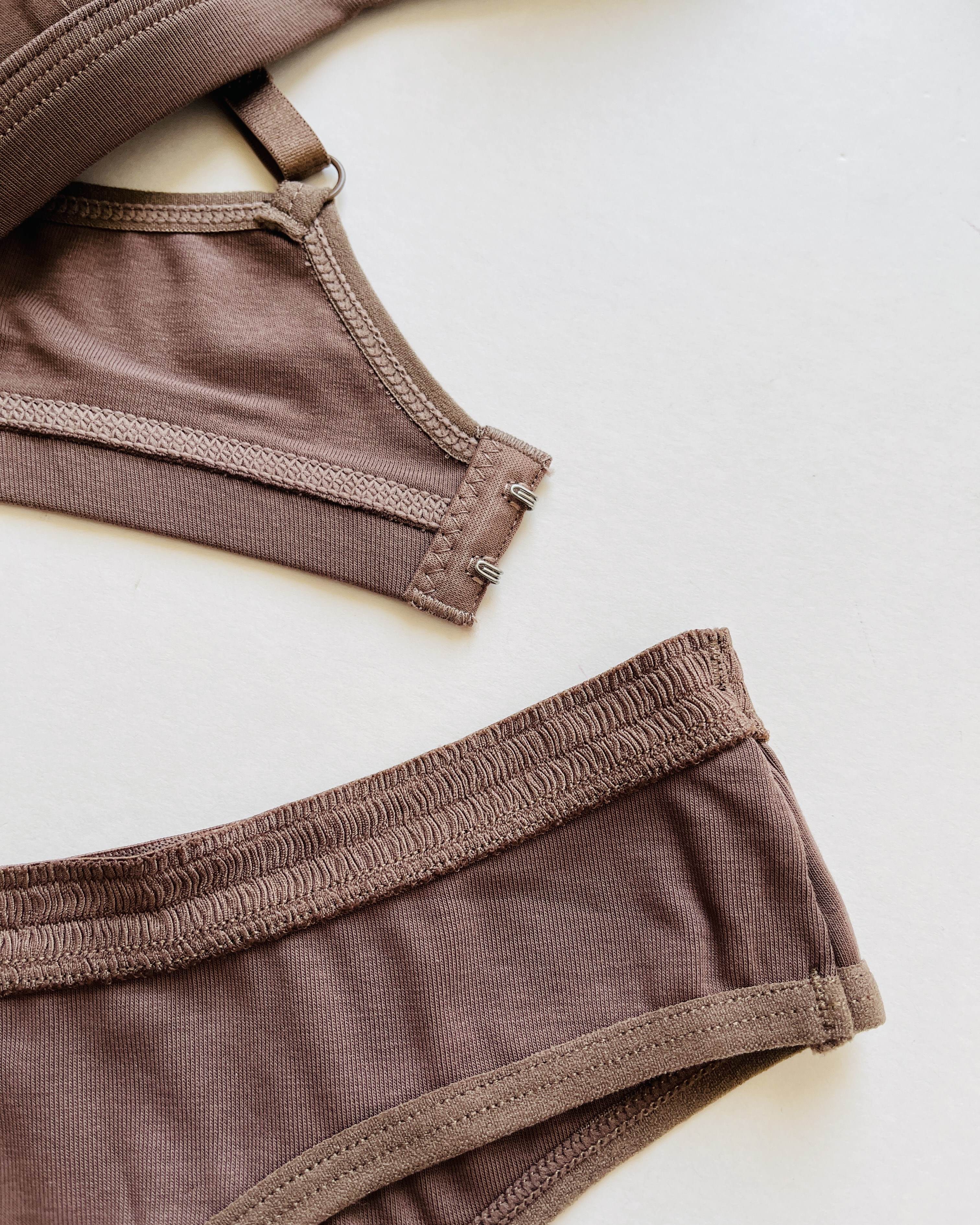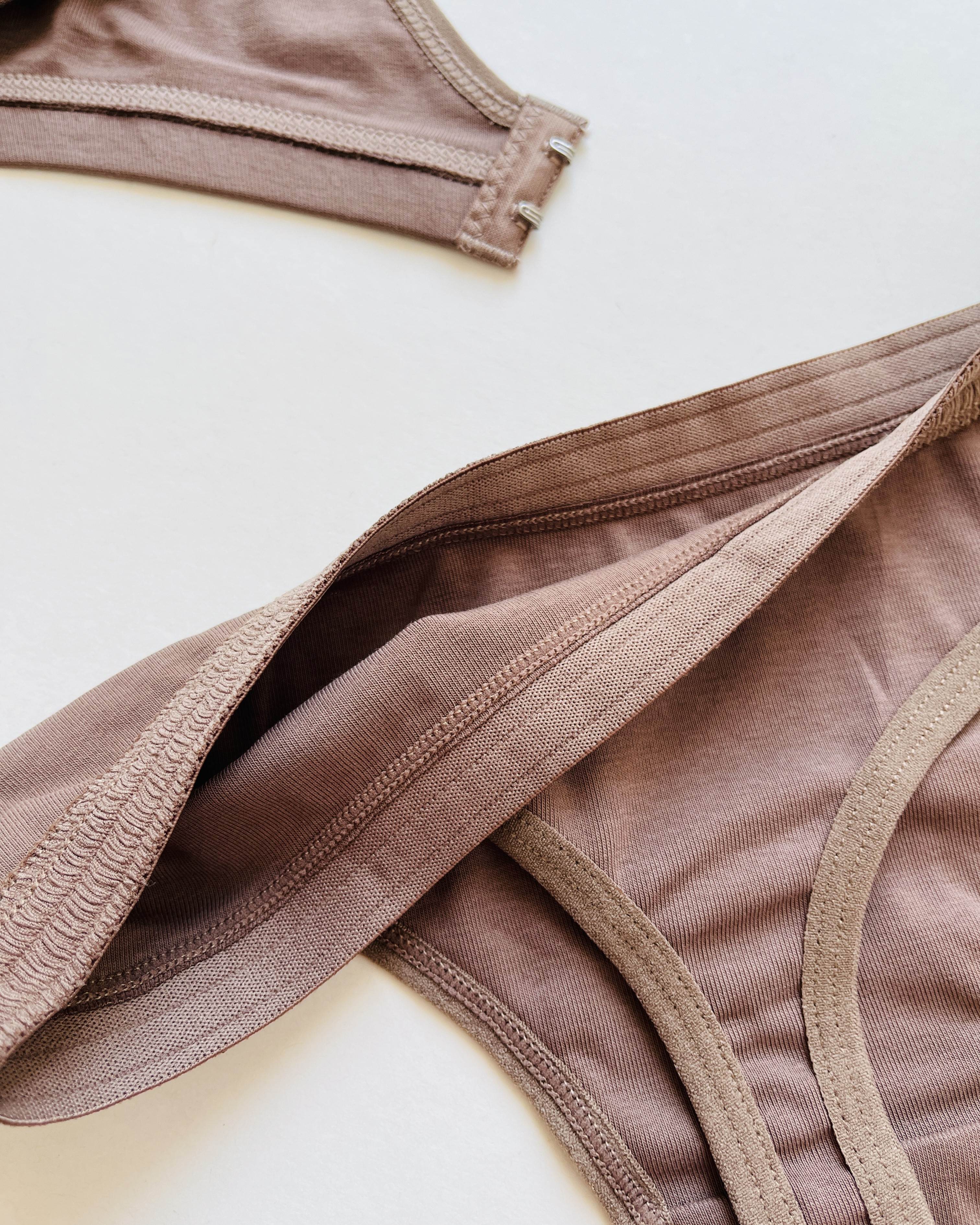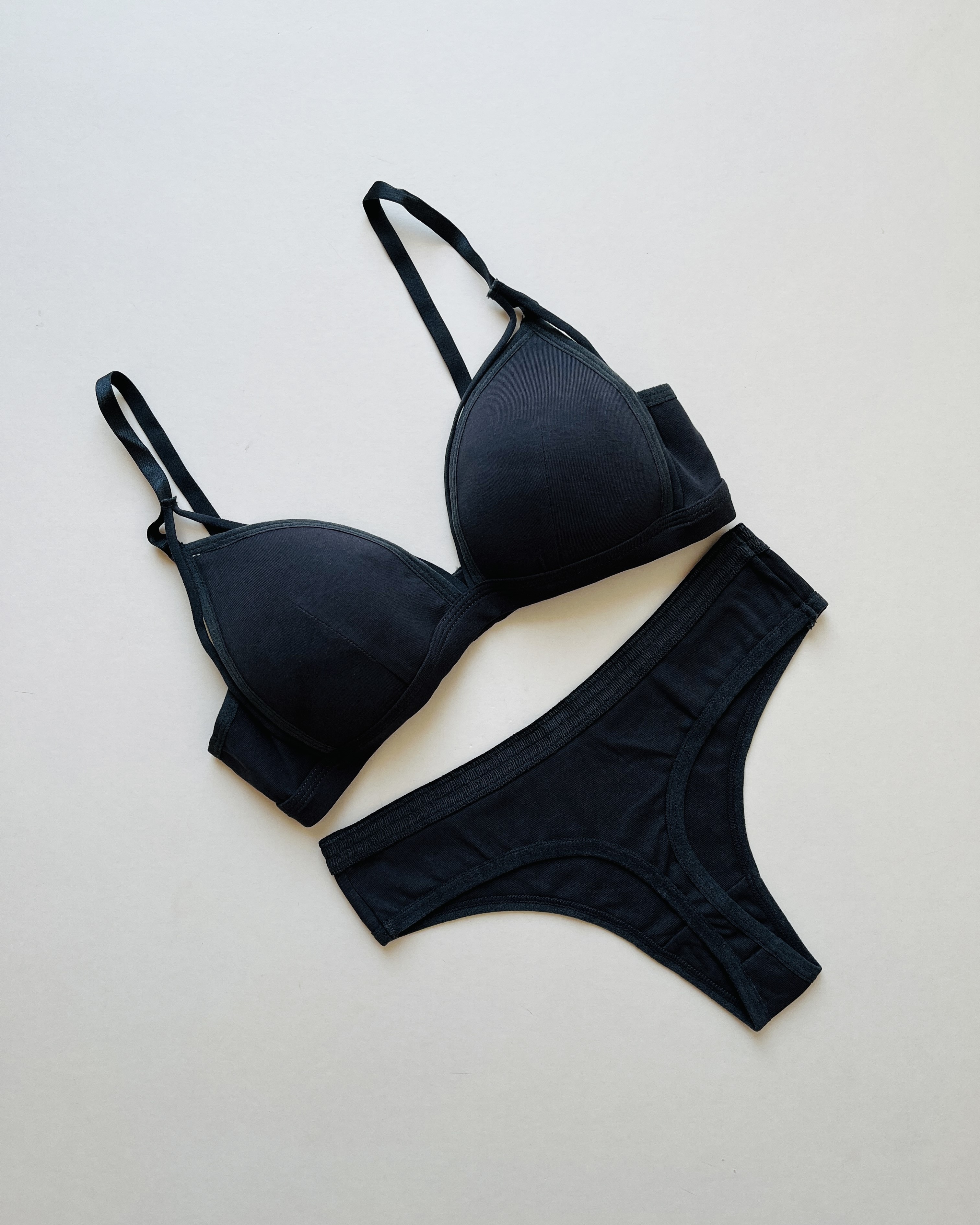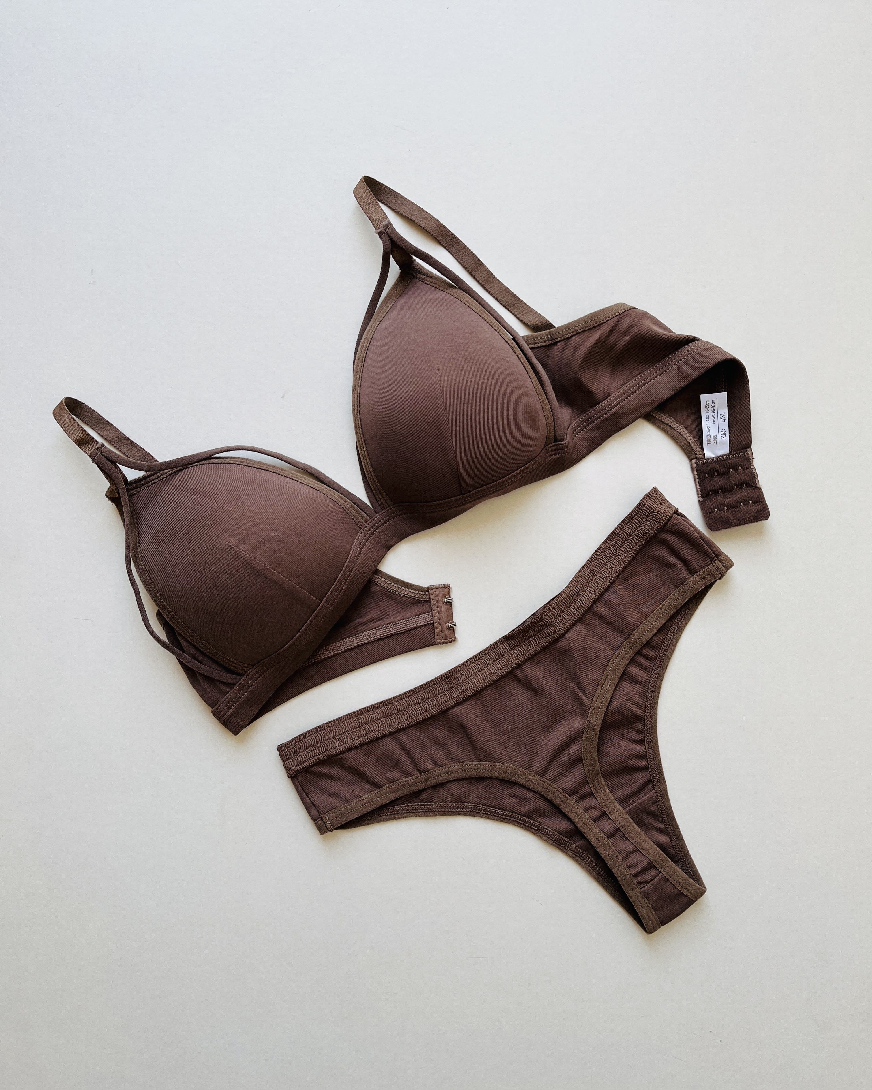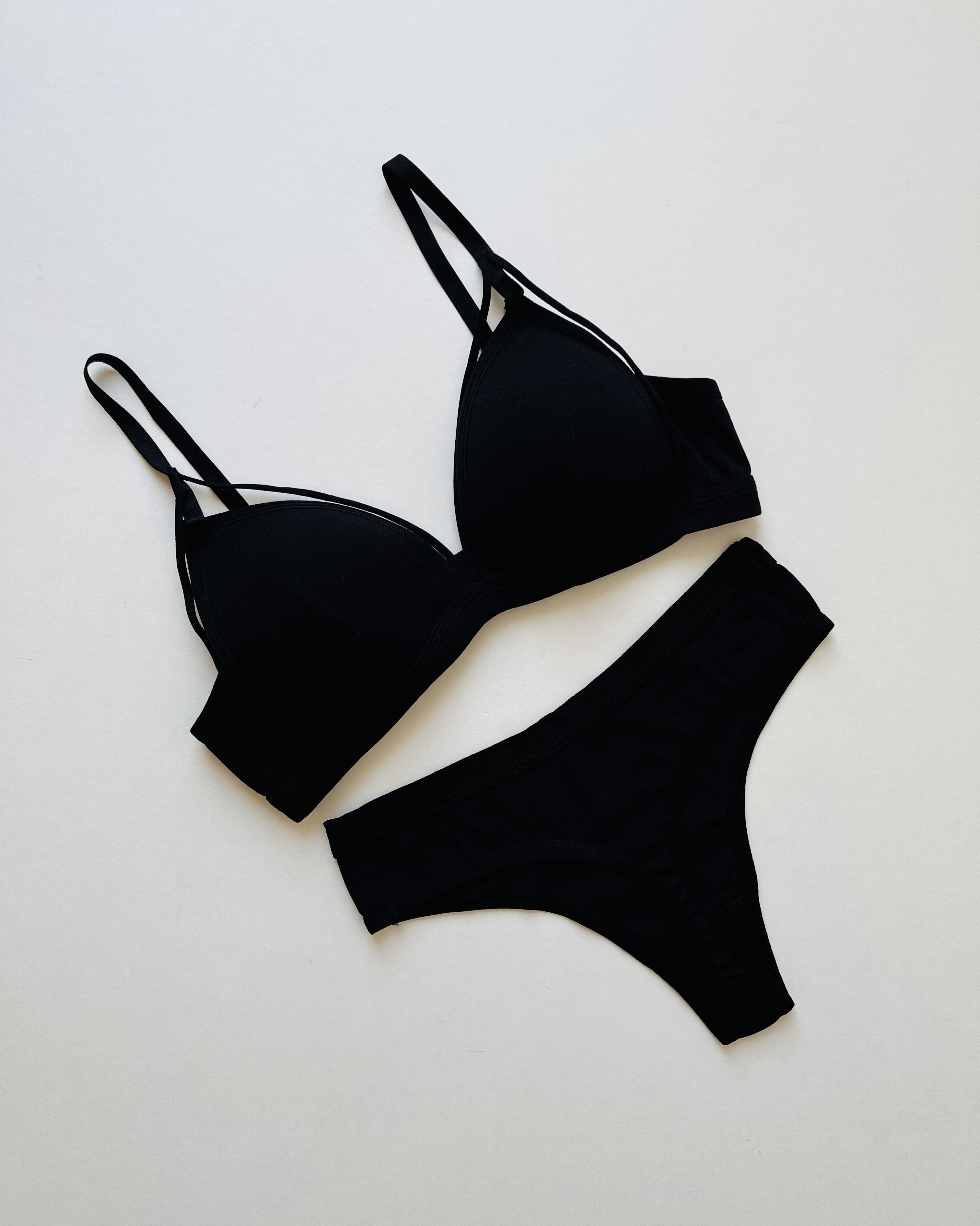 ست سوتین و شورت اسفنجی هارنس دار و بدون فنر با شورت بکلس، محصولی با طراحی مدرن و راحت برای استفاده روزمره و استایل شیک و زنانه است.