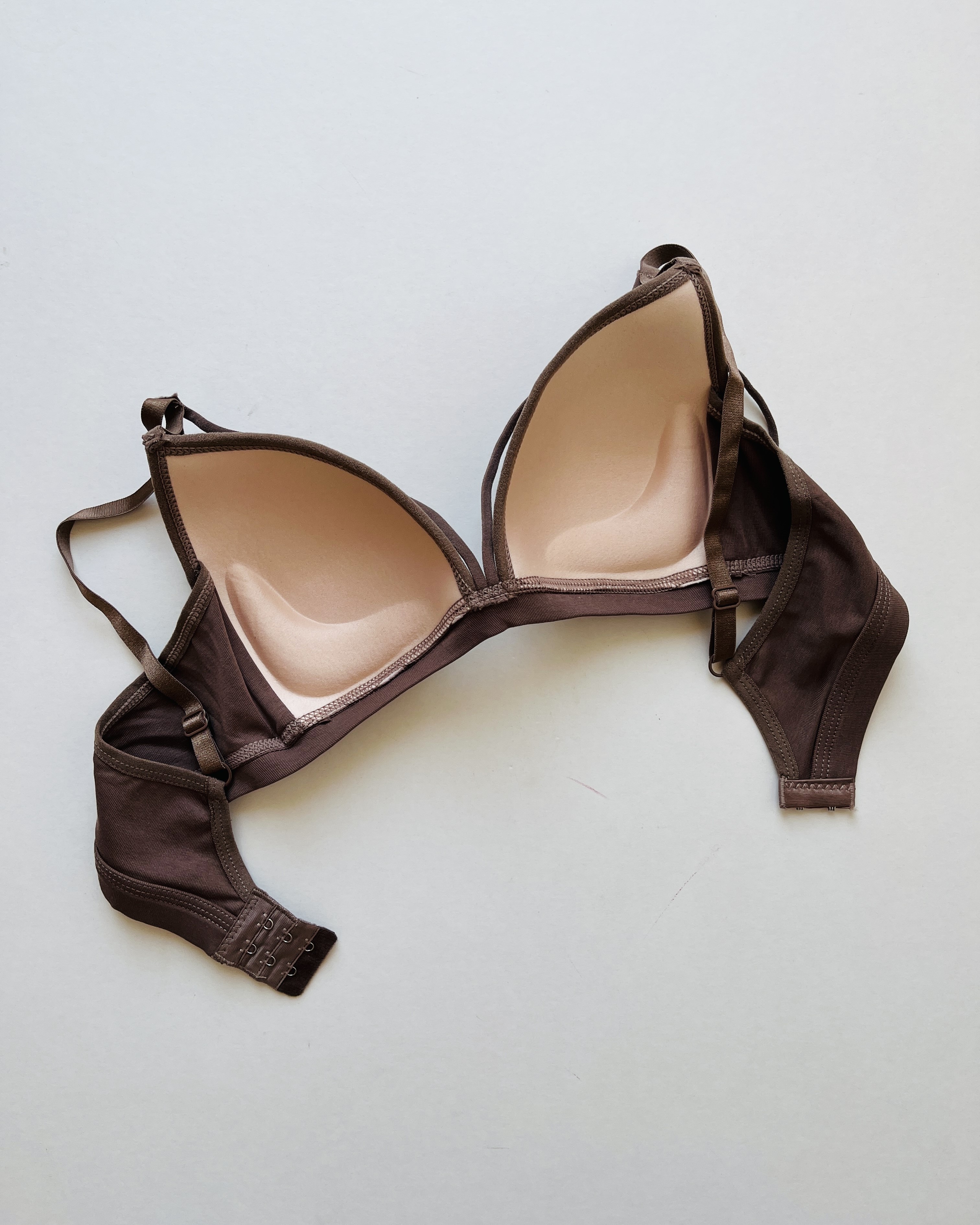 مدل سوتین اسفنجی نازک، دارای کاپ مثلثی و پوشانندگی متوسط