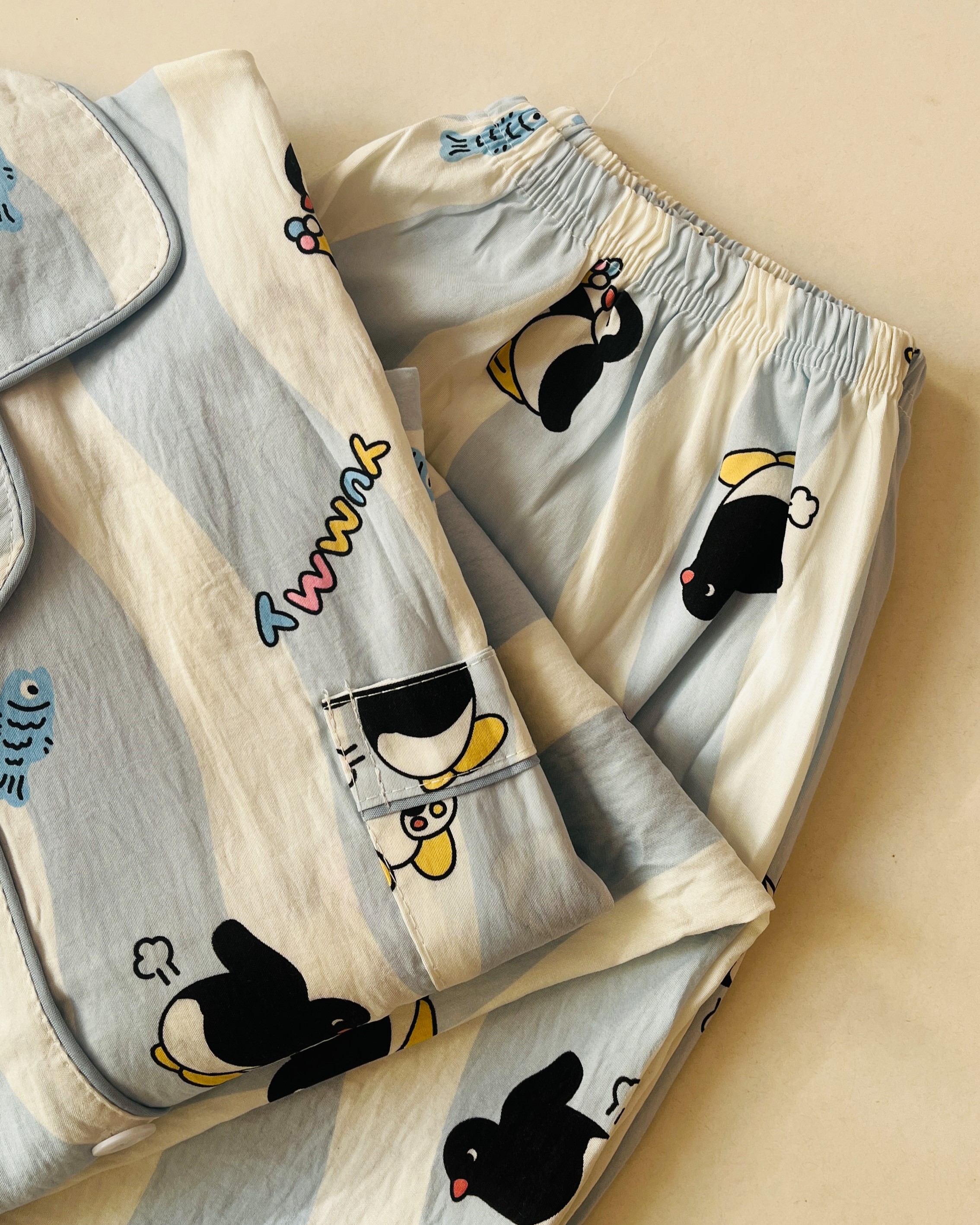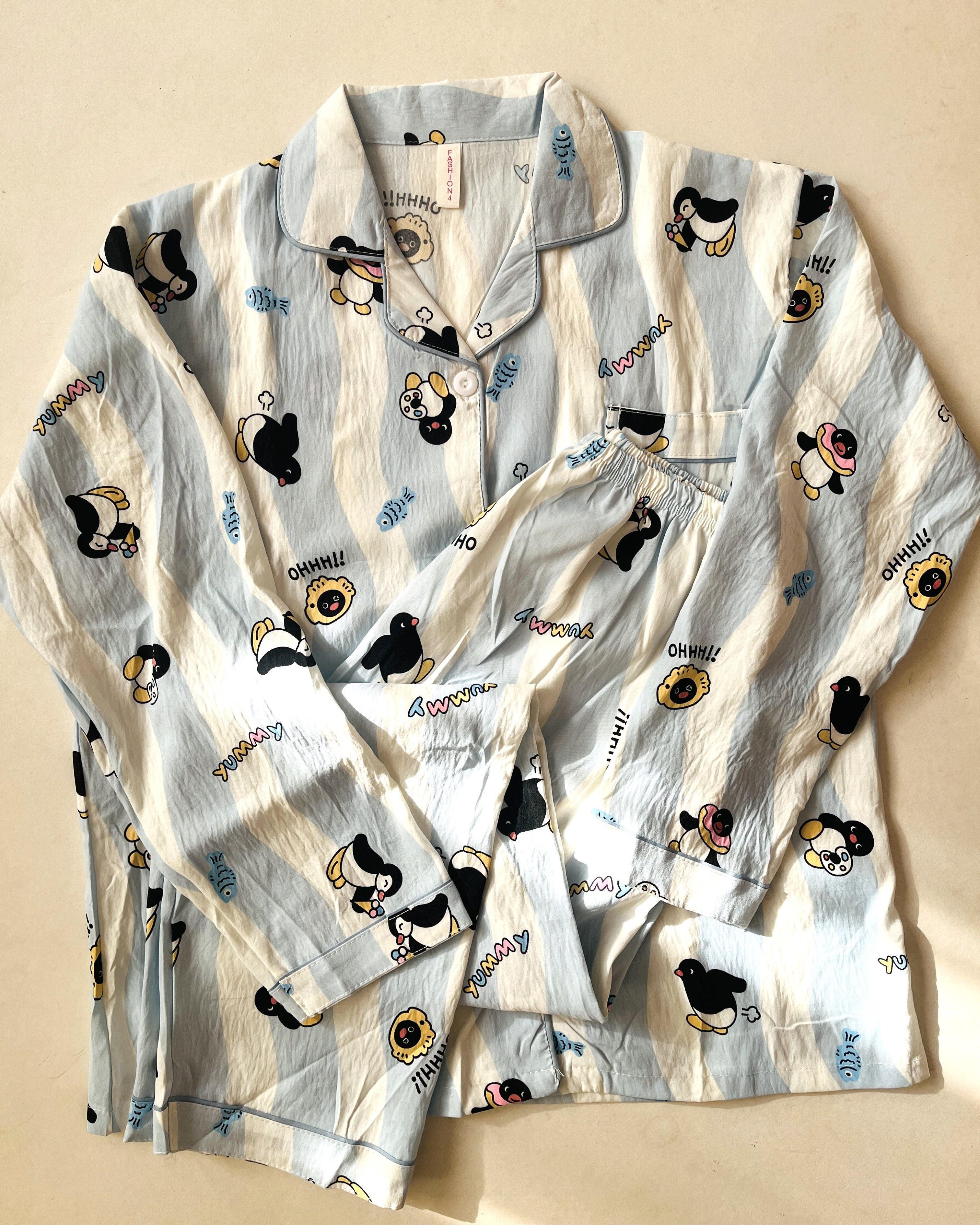 ست راحتی فانتزی بلوز و شلوار آستین بلند طرح پنگوئن- کد N10